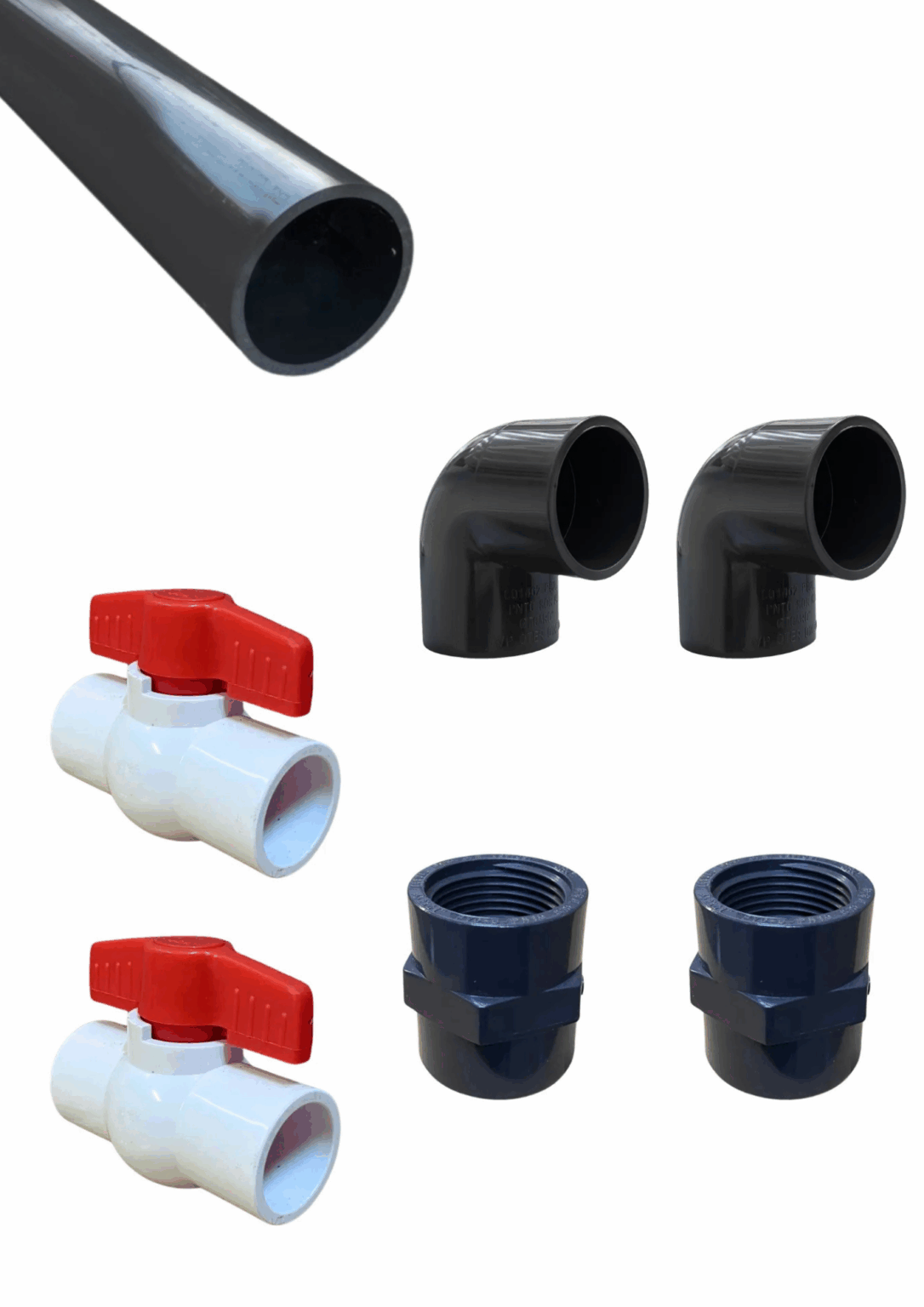 Ten komplet zaworów do filtracji to praktyczne i trwałe rozwiązanie do budowy lub modernizacji instalacji wodnej w balii.