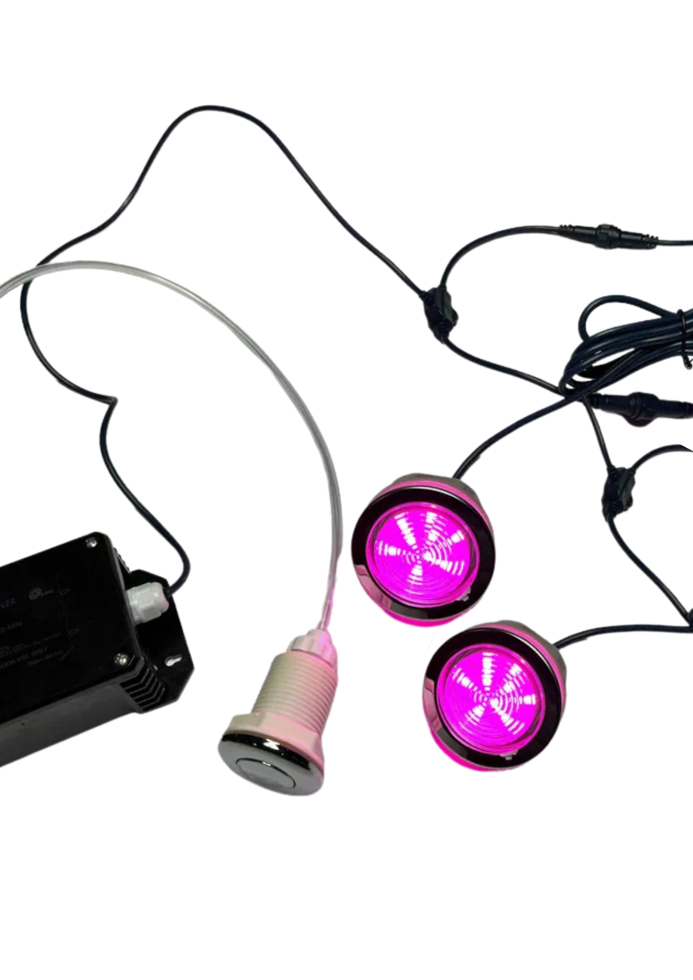 Zestaw lampek podwodnych w wariancie dwóch punktów świecących w 7 różnych kolorach RGB, idealne do oświetlania balii, jacuzzi, basenów i innych instalacji wodnych. Lampki są wyposażone w kompletne akcesoria, zapewniając gotowość do montażu i długotrwałe użytkowanie.