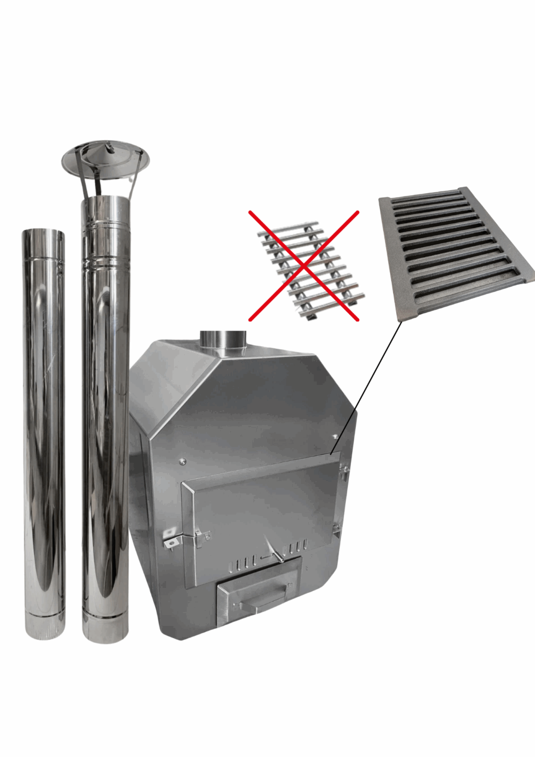Unikalna sześciokątna konstrukcja pieca ułatwia odpowietrzanie komory, a żeliwny ruszt zamiast blaszanego daje mu wielokrotnie dłuższą żywotność. W piecach do balii najczęściej przepaleniu ulegają ruszty wykonane z giętej blachy. W tym modelu ruszt to ŻELIWNY ODLEW.
