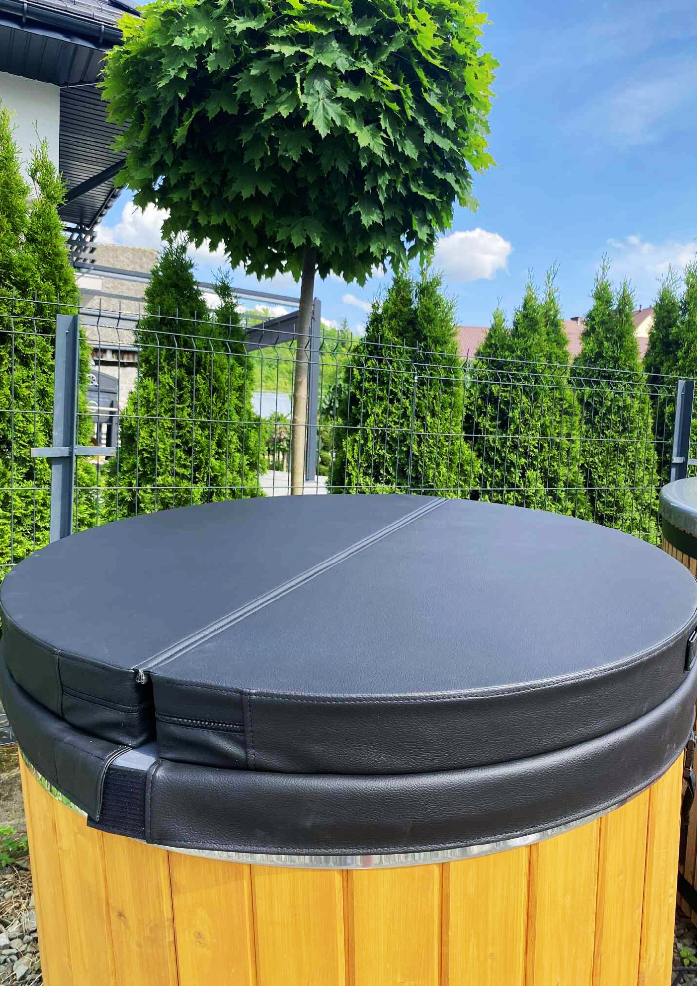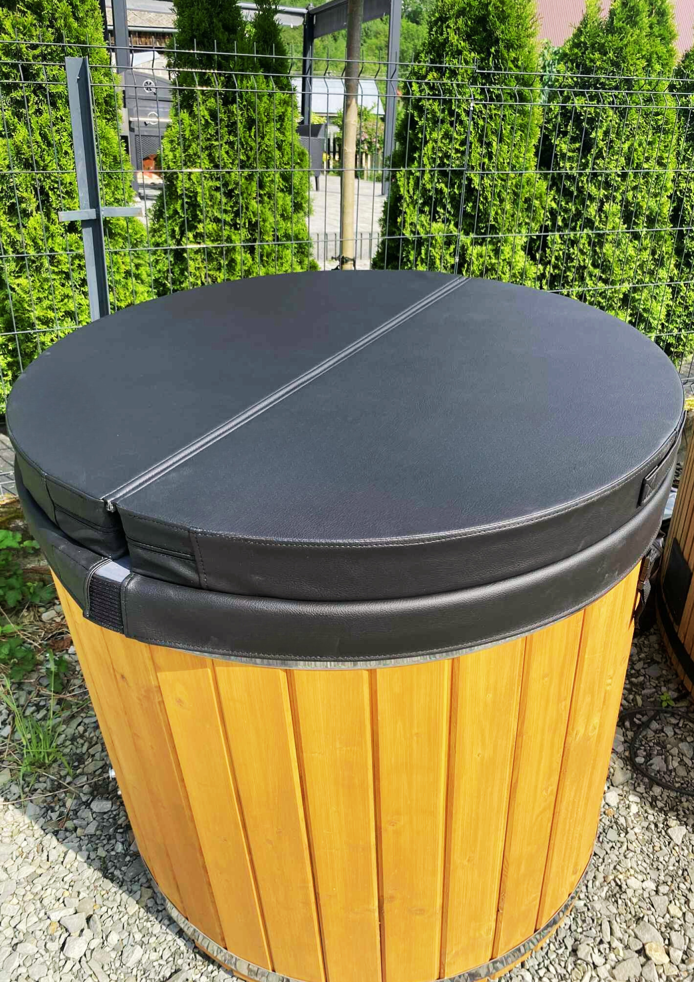 Pokrywa termiczna wykonana z wysokiej jakości materiałów to gwarancja długiej żywotności, bezpieczeństwa i komfortu użytkowania. Pokrywa termiczna do beczki po saunie łączy funkcjonalność z eleganckim wyglądem.