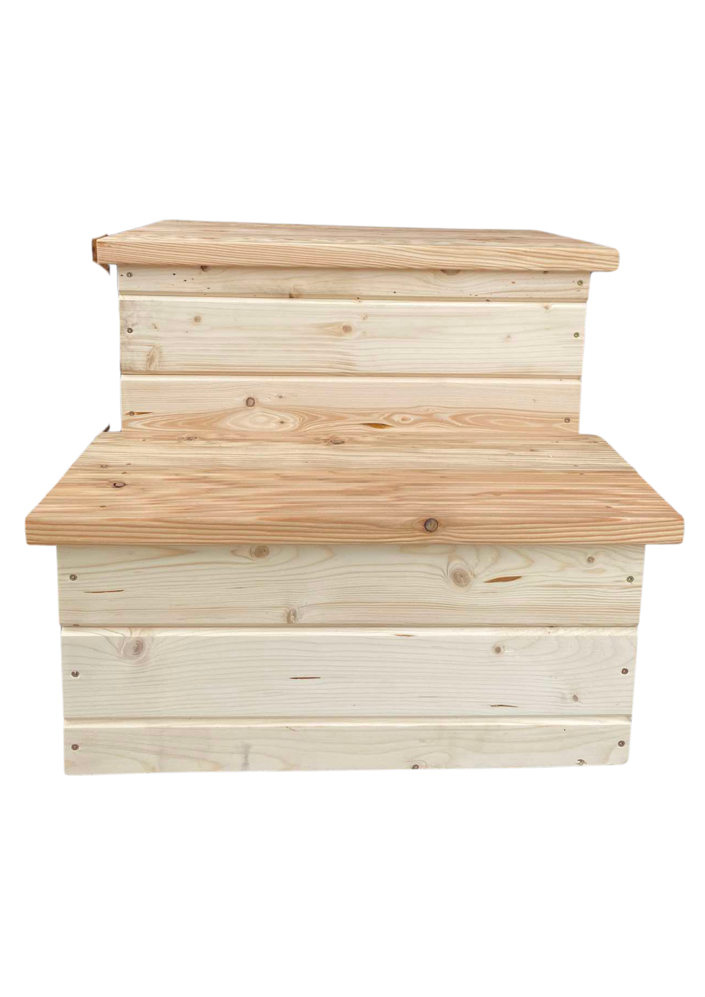 Schodki drewniane do balii ogrodowej to praktyczny i stylowy dodatek, który ułatwia wejście do balii oraz podkreśla jej naturalny wygląd.